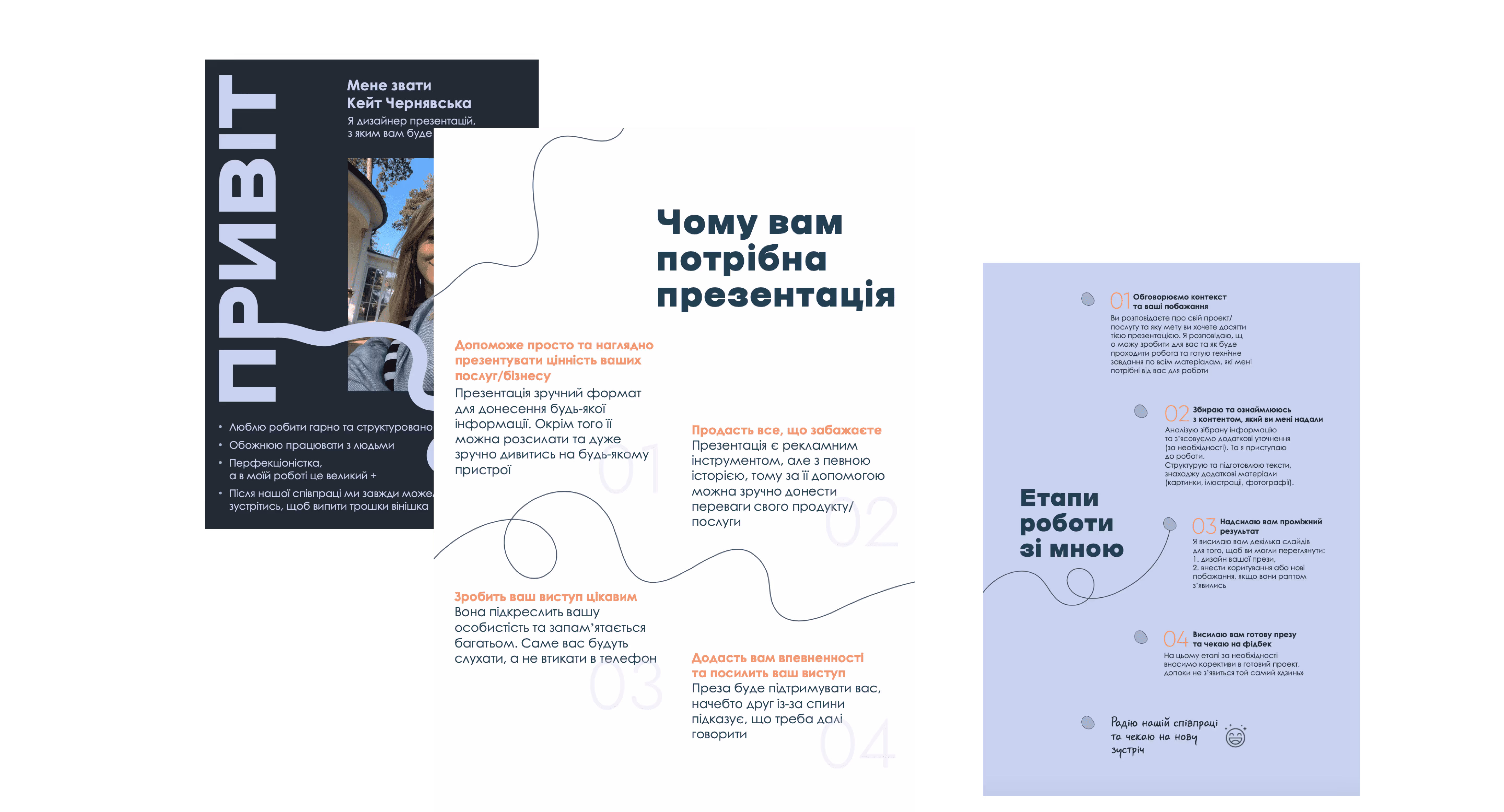 Туторіали записуватимуться і для Keynote (MacOs), i для PowerPoint (Windows). Але крім «тицяння» на кнопки, у туторіалах буде інформація, універсальна для будь-якої програми. Наприклад, блоки про роботу з контентом та технічні навички. Вони значно пришвидшать роботу над прєзами. До речі, студенти перших двох потоків працювали і в Canva, і у Figma.